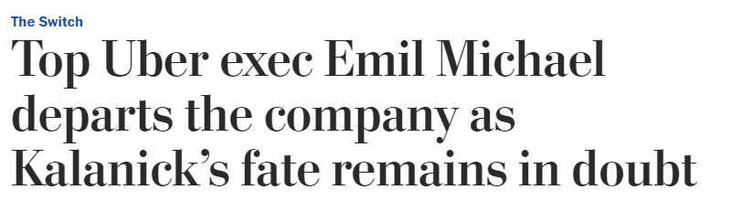 【Uber副总裁离职 亚裔高管补位】Uber高级副总裁 Emil Michael 在周一发给公司员工的内部信上表示,自己的辞呈已于周日生效。但没有解释离职原因。迈克尔是Uber首席执行官特拉维斯(Travis Kalanick)的密友,负责Uber具体业务的管理工作。