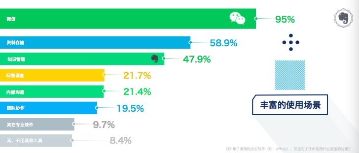 除了常用的办公软件,知识工作者在工作中最常使用的软件不出意外仍然是微信。