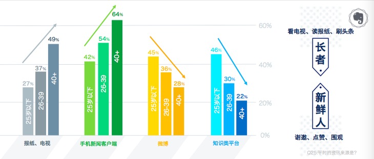 其中年轻人更依赖微博等社交平台,以知乎为代表的内容平台最受25岁以下年轻人喜爱,而传统媒体已经不再是主流人群的资讯来源。