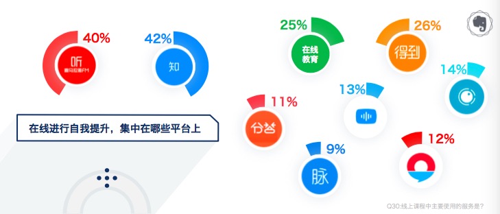 在线进行自我提升,喜马拉雅FM和知乎占据主流。