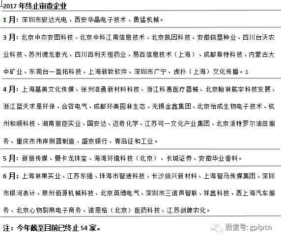 图表四:2017年上半年审查终止公司一览图: