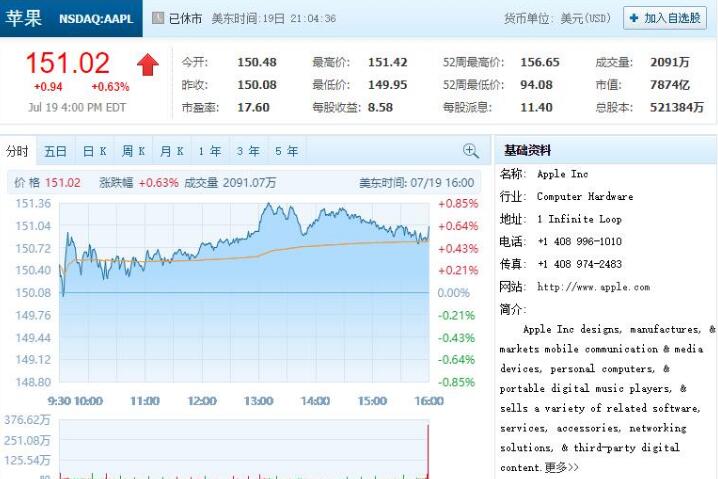苹果股票周三收盘价