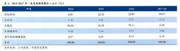 今年一季度前海人寿规模保费收入仅135亿元,同比下降43%。主要是受行业发展方向调整,公司被暂停万能险业务影响,过去的主力业务万能险业务几乎断档,在规模保费中的占比由去年末的76%下降到0.35%。