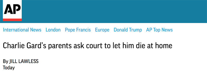 【英国罕见病婴儿父母向法院提出请求,希望带孩子回家】患罕见病的婴儿小查理的母亲周二回到伦敦高等法院,要求法官同意在小查理呼吸机被拔掉之前,让小查理回家感受几天的平静。小查理被诊断患有线粒体耗竭综合症,医生认为无法医治,为减轻痛苦,建议关掉生命维持系统。父母将医院告上法庭,但法院支持医生的建议。最终父母决定放弃治疗。这一事件引起了教皇、特朗普等各方面的关注。
