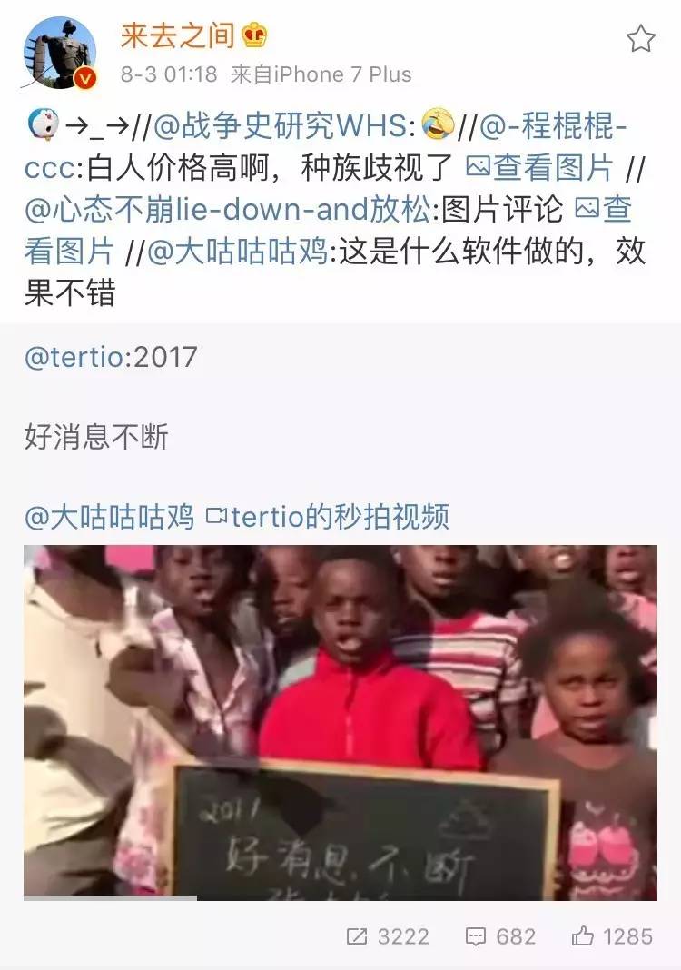 林同学:这个问题,我跟非洲的朋友下午有说过。我今天看微博了,网友有两个问题:一个说我种族歧视,一个说拍非洲拍摄几乎零成本,可能我们就分小朋友一点糖吃。