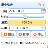 查询轨迹共坑可以查看最近七天的行程轨迹。