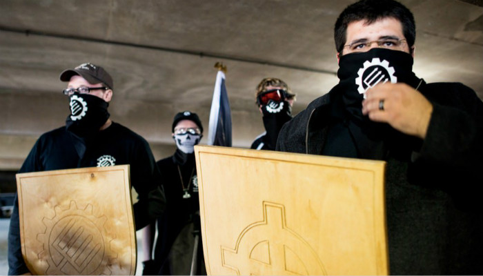 中世纪研究学者和文化历史学家称之为中世纪主义(medievalism),因为这并不指代历史中的真实时间或地点,而是人们的幻想——其中大多数都是关于一个想象中的、和现实完全无关的过去。本周聚集在夏洛茨维尔的白人至上主义者正是中世纪主义的体现。中世纪研究学者发现,在 Facebook 和 Twitter 上的极右派团体想要为他们的组织设计一种小“纹章”,他们使用了法西斯主义的“竖棒”标志,像宝剑一样交叉起来,并将这样的标志画在类似十字军的盾牌上。在上面的照片中,马修·海姆巴赫(Matthew Heimbach)手里拿着的盾牌上刻着“凯尔特十字架”图案,这是挪威纳粹的设计,模仿了中世纪早期爱尔兰和英国的的十字架样式。而 3K 党一直有着“白色骑士”的象征(南方反贫穷法律中心上周末发表了一篇详细解释极右组织标志的文章)。