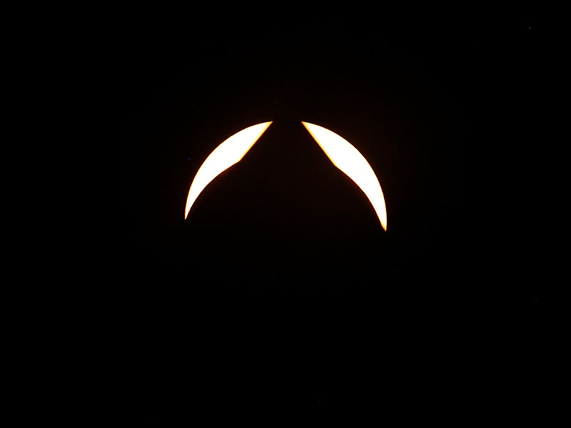 南卡莱罗纳州查尔斯顿,太阳在被月亮全部遮住前形成的一轮“新月”。此次日全食横跨美国的14个州,从西海岸的俄勒冈州开始,在南卡罗莱纳州结束,历时一个半小时。