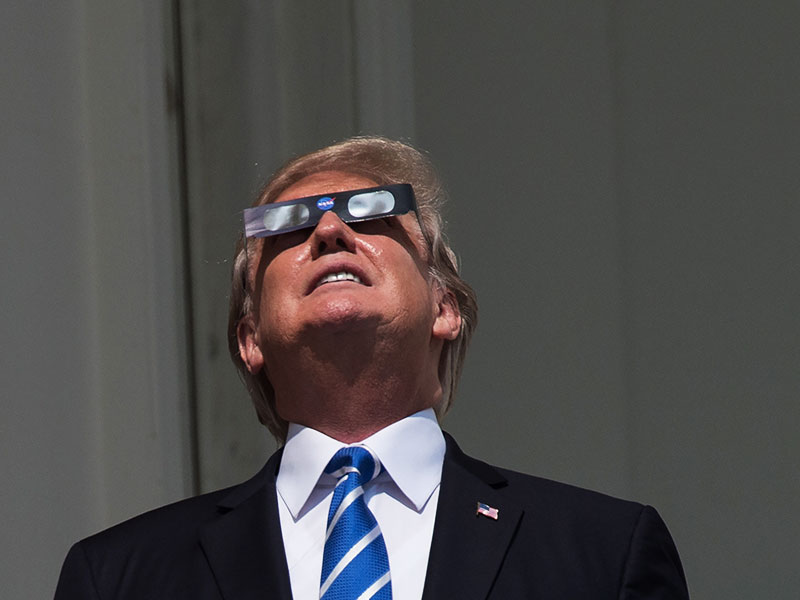 2017年8月21日,美国总统特朗普在白宫的阳台上观看日偏食。