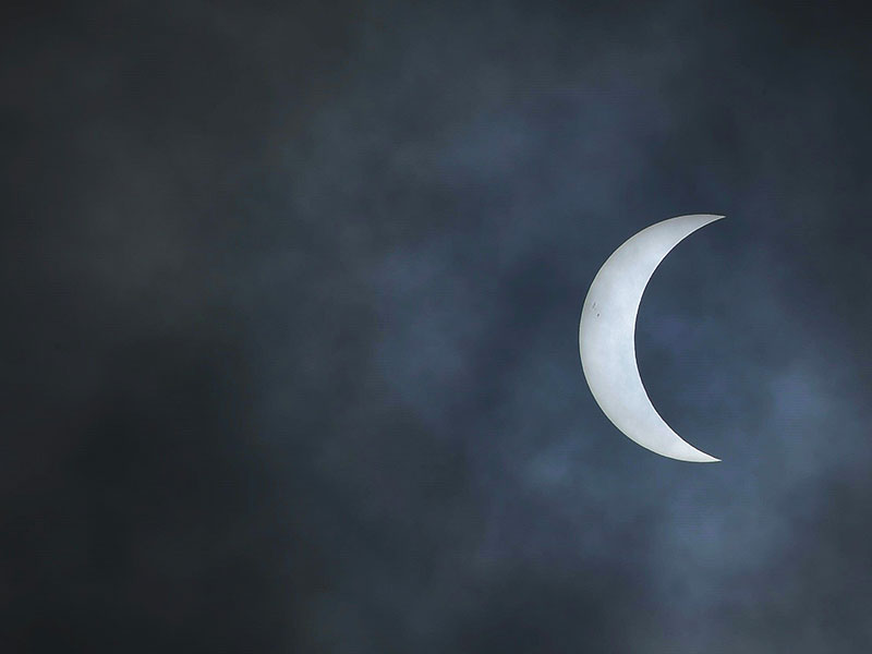 2017年8月21日,华盛顿纪念碑后,呈新月状的太阳。