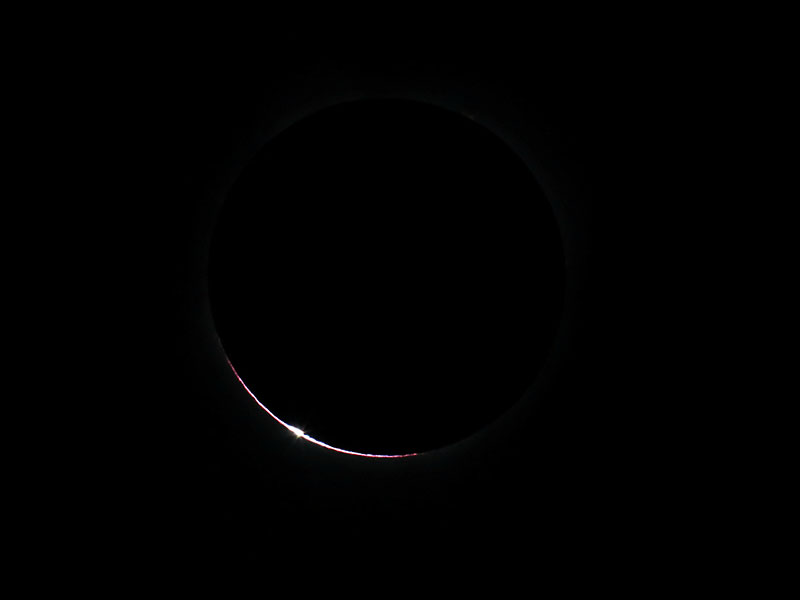在俄勒冈州迪波湾(Depoe Bay)拍到的日食,太阳几乎完全被月亮挡住。