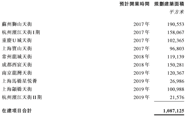 目前龙湖还拥有10座在建的商场,合计在建面积109万㎡