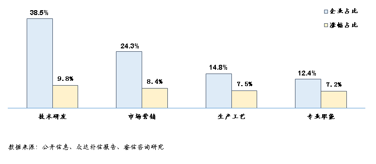 三、从部门上看,专业性要求较高的部门将是未来涨薪的重点