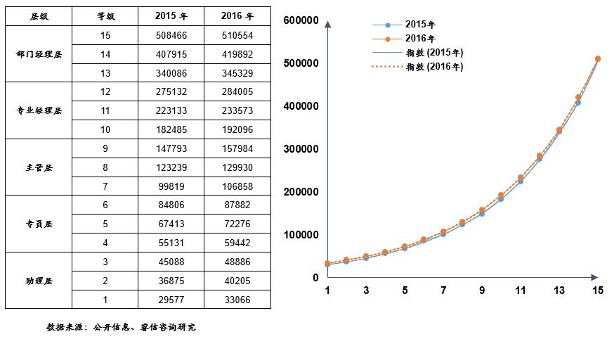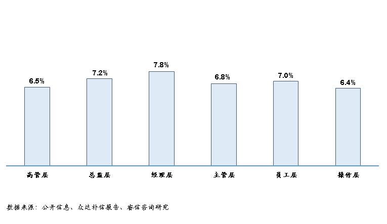 图六:2016年不同层级的薪酬增长率情况