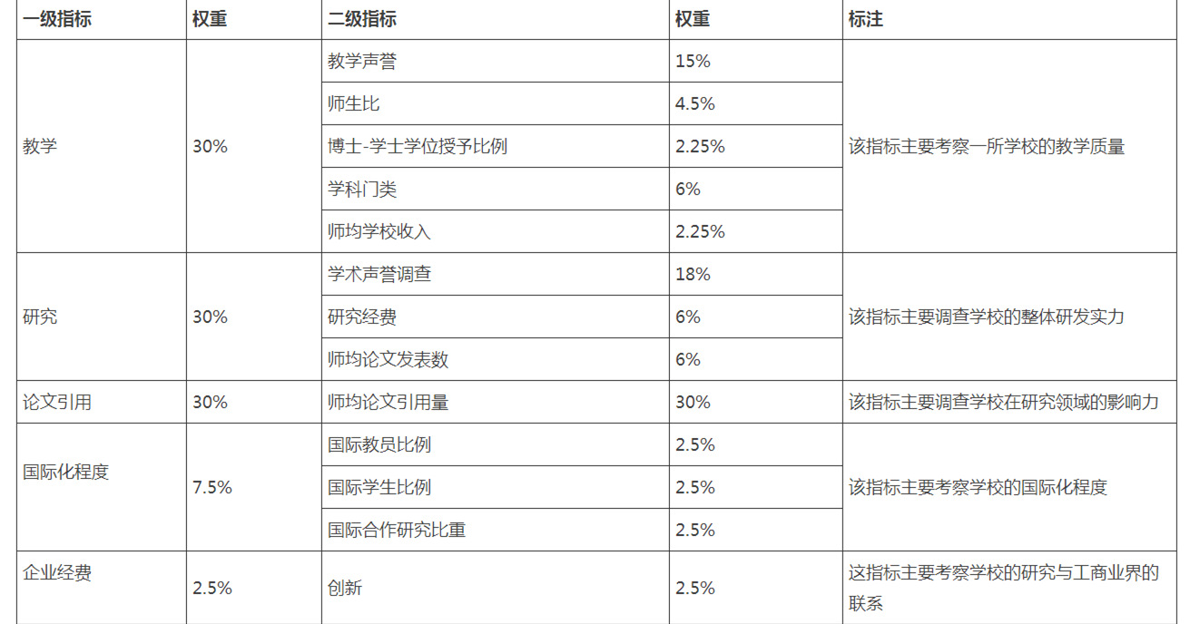 而泰晤士的评价指标更为综合,除了考察教学质量和学术影响力之外,高校国际化程度以及与企业合作也纳入考量范围。
