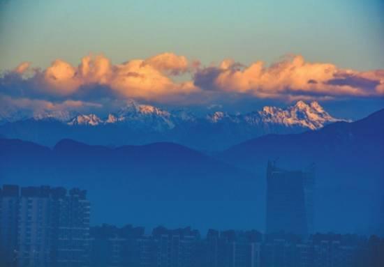 今年6月5日、世界环境日,成都天空出现“惊艳蓝”。曾经,杜甫的一句“窗含西岭千秋雪”传诵千年,意即透过窗户可以望见西岭上堆积着终年不化的积雪——如今,不只西岭雪山,距离成都190多公里的巴郎山也能被市民们尽收眼底了。
