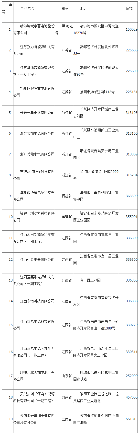 2017年4月28日,工信部发布《铅蓄电池行业规范条件(2015年本)》企业名单(第三批),共有19家企业入围。
