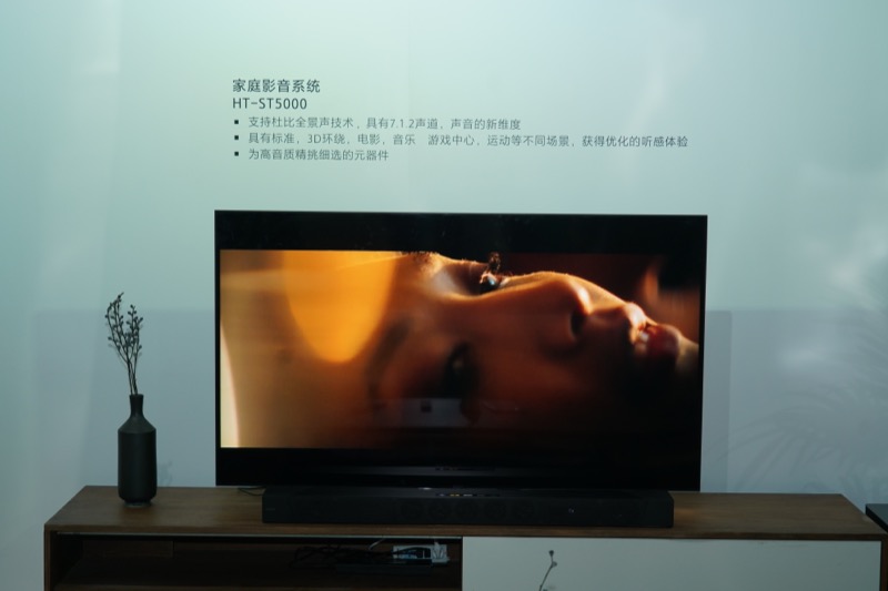 同期亮相的还有索尼无线家庭音响系统旗舰回音壁新品HT-ST5000,ST5000结合了索尼各种音频技术,拓展声音维度,相较于传统回音壁声音设计,新增加了一对向上发声的实体扬声器,同时配合杜比全景声技术,营造出具有“高度感”的声音。机身前方的7组扬声器,形成扬声器矩阵,并且每颗优化设计后的扬声器使用单独的放大器来驱动。