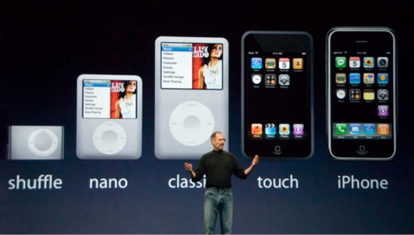 2007 年,苹果宣布 iPod 销量已经突破 1 亿大关,也是在这一年,iPhone 横空出世。从 iPhone 诞生起,就已经承担了 iPod 的职能,还记得 iPhone 发布会上,乔布斯是怎么说的吗?