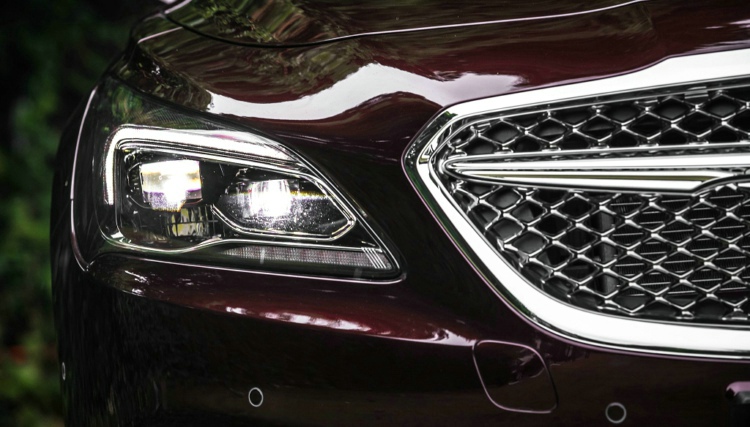 别克车标两边的飞翼饰条也作出了小调整,相比起普通版会更粗一些,配合镀铬网格中网来更能突出车辆的档次。