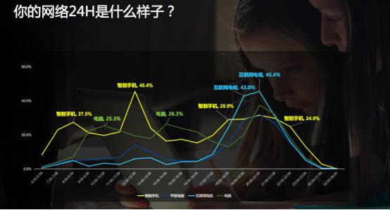 由于基于不同终端,呈现出了不同的个体行为,营销就需要思考在不同的场景下,如何去向用户传递匹配场景的营销信息,跨屏的视频营销成为必然的选择。如本次研究报告数据显示,如果以24小时为区间,会发现,用户在6:00-9:59用户主要使用手机端,占比为27.5%;在10:00-11:59转换为电脑,占比为25.3%;45.4%的用户在12:00-14:59又开始使用手机端;15:00-17:59的时候26.3%用户使用电脑;19:00-22:00用户观看的则是互联网电视。