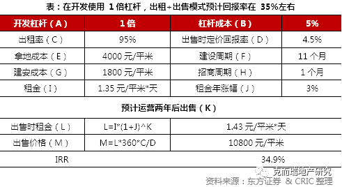 此外,高端仓储的成本主要集中在拿地成本、建安成本、运营费用和税费等,目前行业内单层高标准仓库的建安成本在 1800元/平米左右,以上海为例,预计在出租+出售模式下,项目出售时综合回报率能达到 34.9%。