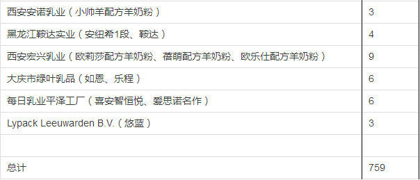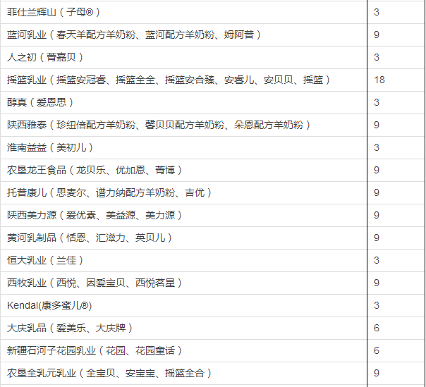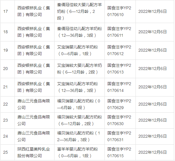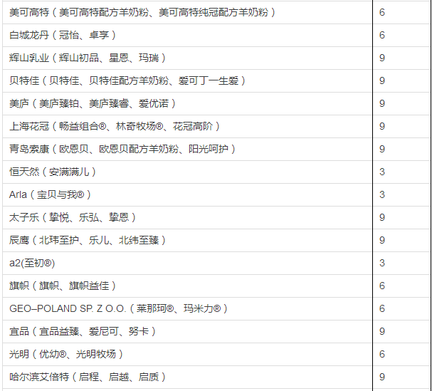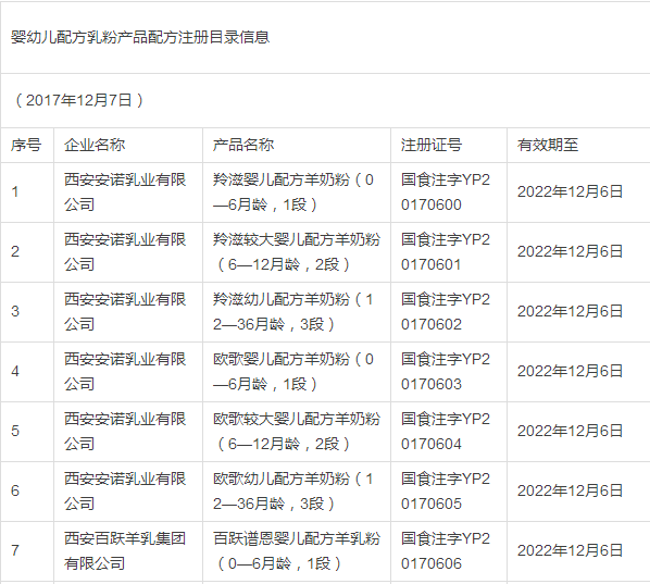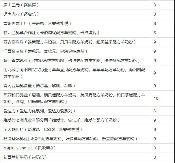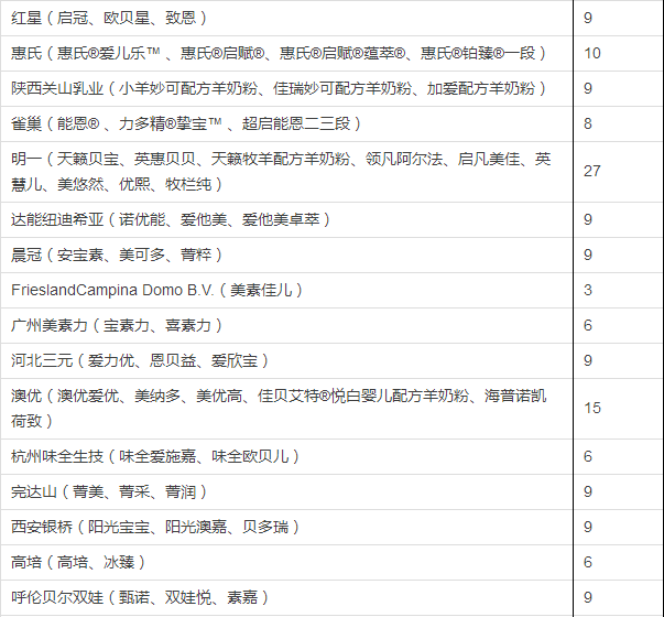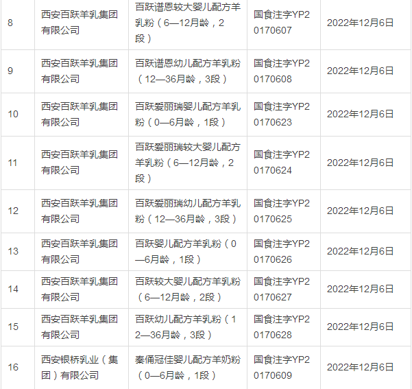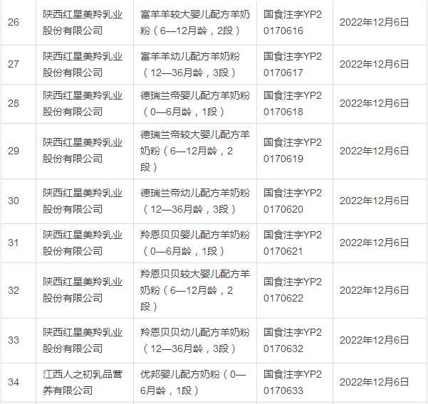 据小食代整理,截至上一批(12月5日公布),已获奶粉配方注册的企业和配方如下: