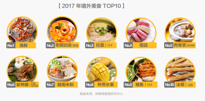 2017年境内和境外旅游餐饮消费,分别同比增长了201%和14%,中国自由行游客在外旅游时展现出对美食的热衷。自由行游客在内蒙古、东北三省旅游时,会在餐饮上花费更多,人均花费高于一线城市。境外旅游餐饮人均消费最高的目的地是澳大利亚、加拿大和日本,澳洲牛排、日本寿司等美食的价格均相对较高。