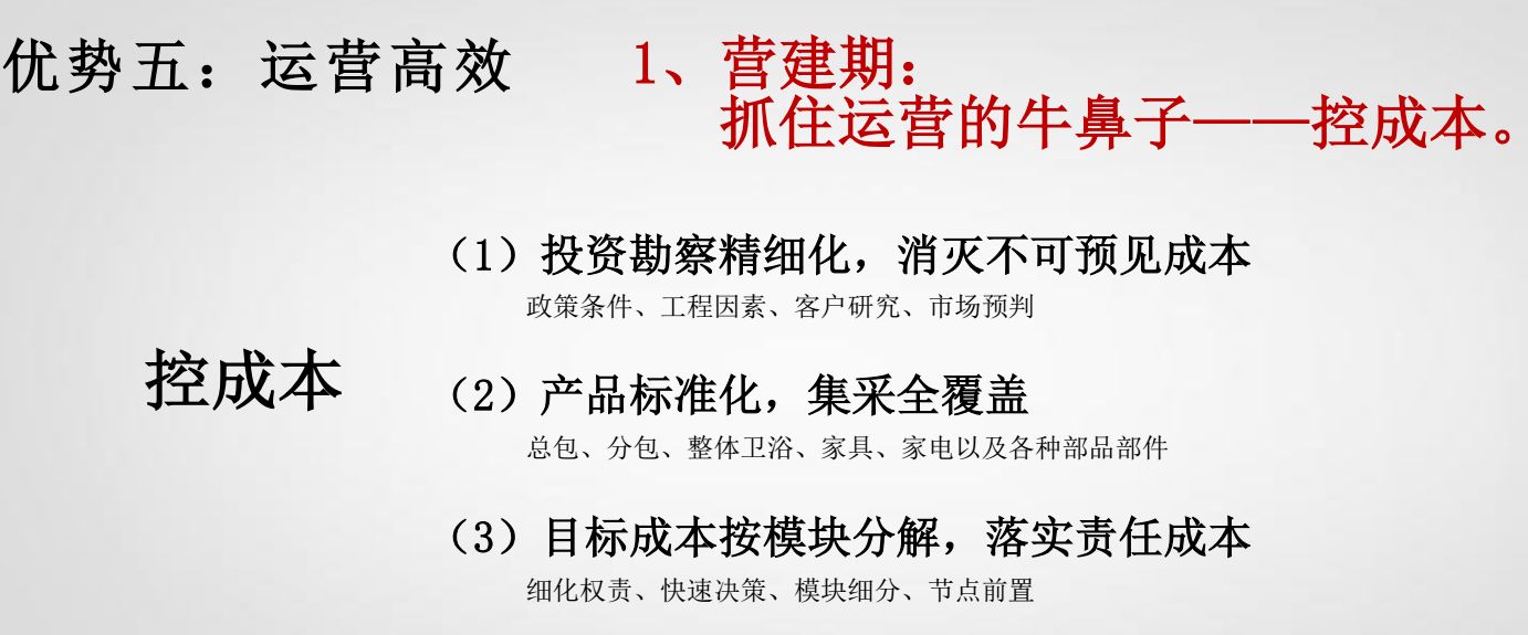 这也是为什么很多房企对自持物业运营心存忌惮的重要原因,因为房地产开发,自有资金也就20%左右,如果不快周转,几个甚至一个项目就能把整个公司的现金流耗尽。那还怎么玩啊!
