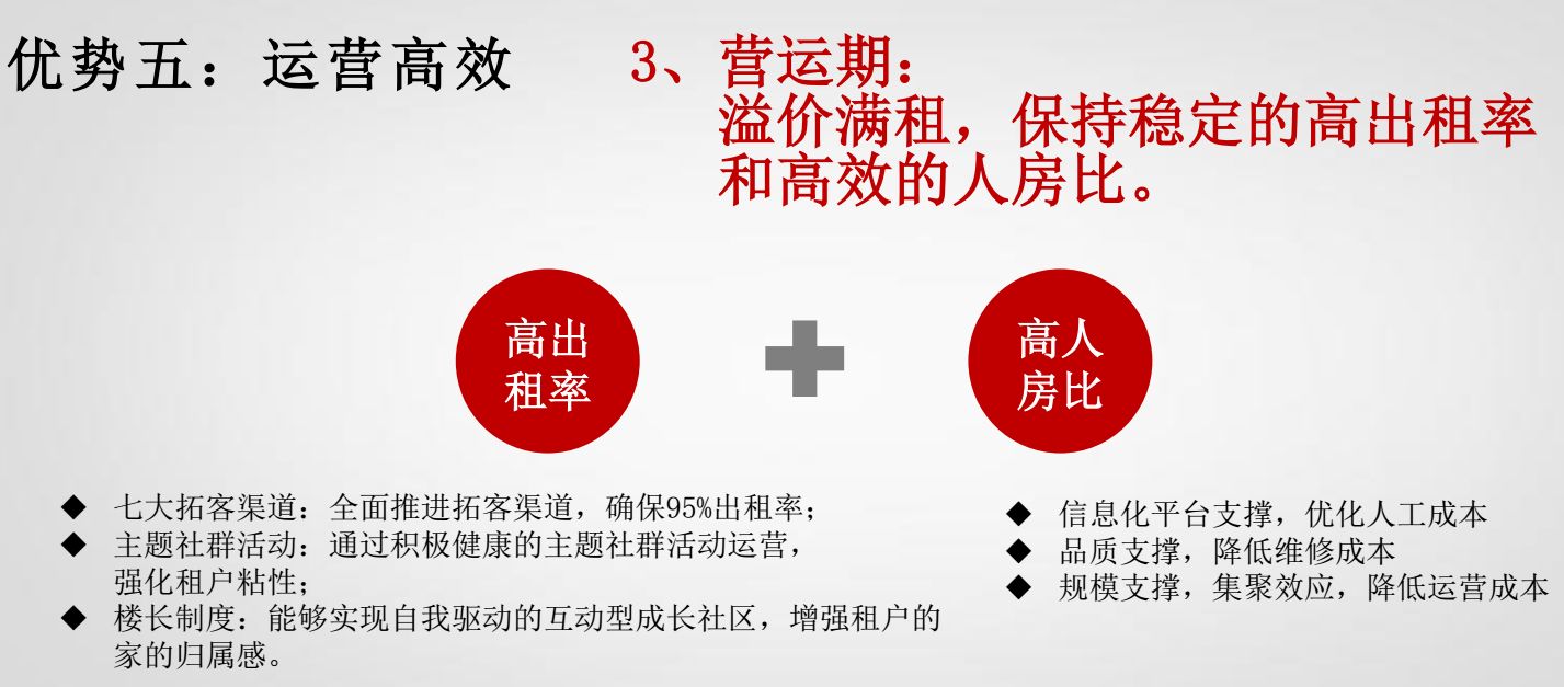 传统开发领域拼的是土储、快周转,长租公寓则要拼运营和服务,否则你连发行REITs的资格都没有。资产证券化解决的是企业现金流的问题,但难以解决利润问题。最终,REITs产品还是要算账,回归收益率的。