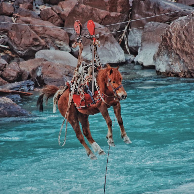 西藏这块神奇的土地上,连马过河都是用“飞”的!