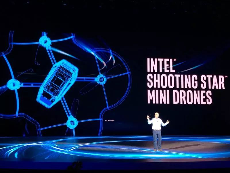 科再奇演示了由100架英特尔 Shooting Star 微型无人机带来的壮观的室内灯光秀,创造了利用一台计算机在室内同时放飞最多无人机的全新吉尼斯世界纪录。