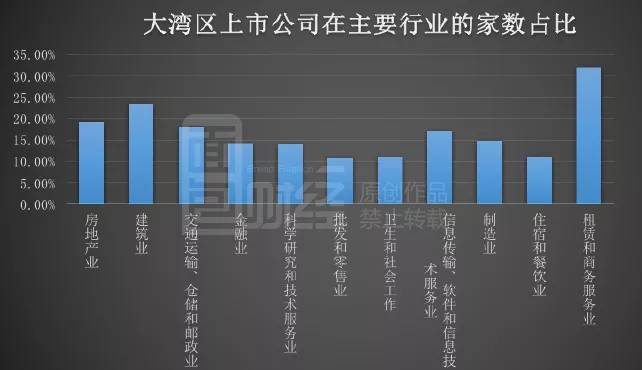 除此之外,大湾区上市公司在租赁和商务服务行业上的实力也秒杀其他区域,居然占了31%。