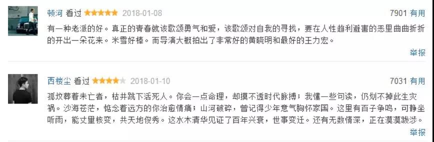 有人痛哭失声,感慨青春当如是;有人冷眼旁观,尬于鸡汤不能愣灌。总体来说,画面和表演的出彩、细节和情绪的共鸣,是情感派点赞的理由。而故事薄弱、概念驱动和剪辑配乐的失控,则被逻辑派嗤之以鼻。至于是瑕不掩瑜还是沙里淘金,全看观影者自身经历和心态。
