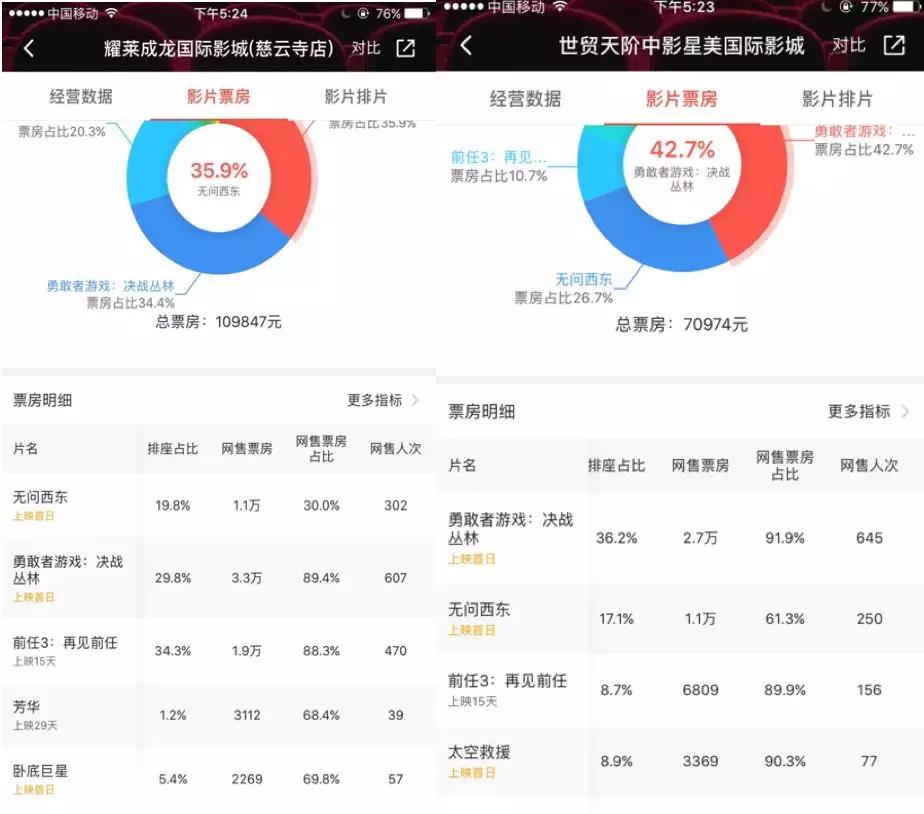 与此同时,据猫眼专业版数据显示,《无问西东》的网售票占比也出现了下滑趋势,个别影院网售占比远低于平均水平,这也为质疑电影票房注水增加了一定砝码。