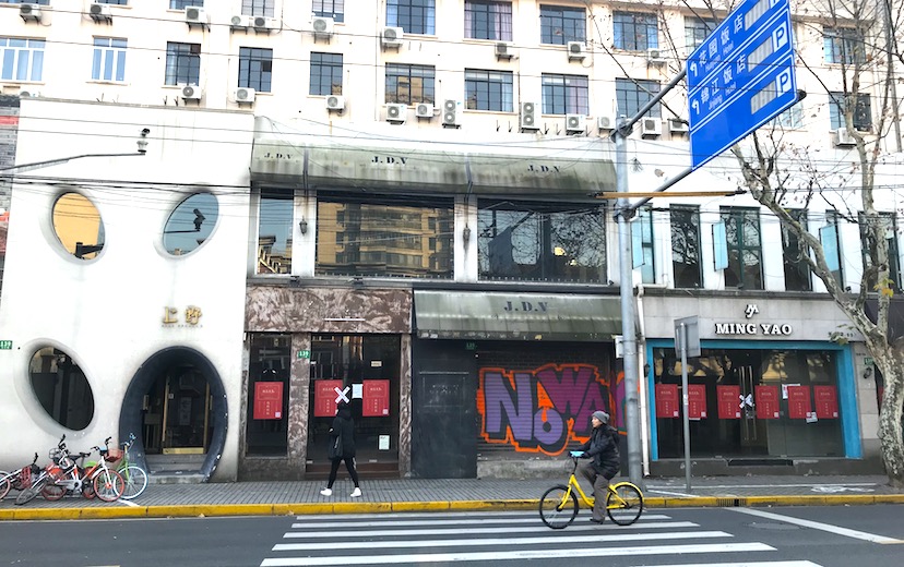 如果在“家宴”的那两晚去往活动举办地——NPC长乐路店铺附近,会发现它所在的长乐路挨着上海社科院的一侧已经非常寂寥。除了NPC将营业至1月底,包括Lin Edition Limit、上野眼镜店等在内的其它沿街店铺均已被贴上封条。即使黑着灯,路灯投射的光束还是能隐约地照出这些昔日精致的店铺里已然堆起了大堆的建筑垃圾。