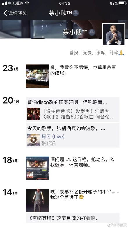 就在两天前(2018年1月23日),茅侃侃发了一条朋友圈:“嗯,我爱你不后悔,也尊重故事的结尾”。