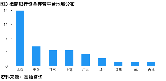 截至2018年2月底,在上线徽商银行存管的35家平台中,北京地区最多,达14家;其次是安徽,达5家;江苏省和上海市均有4家。另外,上线徽商银行资金存管的平台在广东省和湖北省各有3家和2家;其他福建、山东和吉林各有1家。