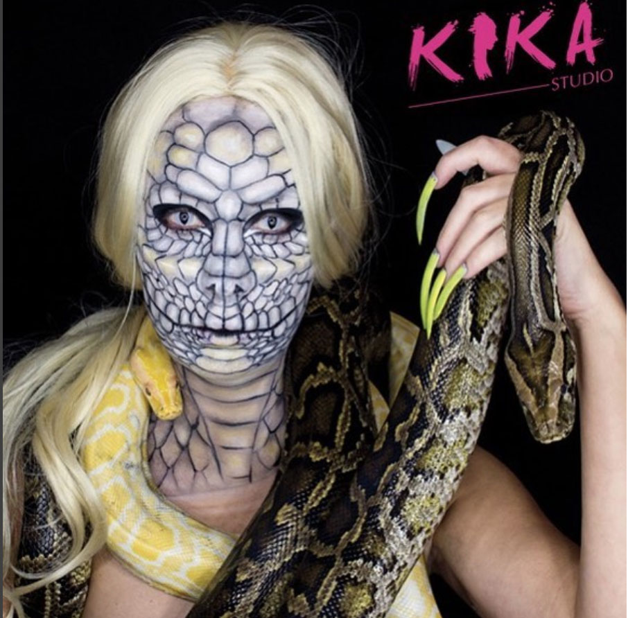 妹子名叫Kika,是一位创意美妆博主,人体彩绘艺术家。