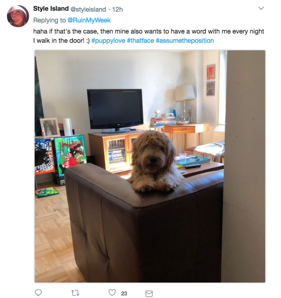 一位网友分享了自家很有总裁气质的狗子: