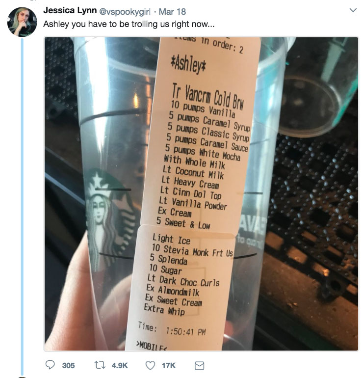 身担此等重担,星巴克店员没有在怕的,什么Kate,Ashley,Mary的,来一个治一个: