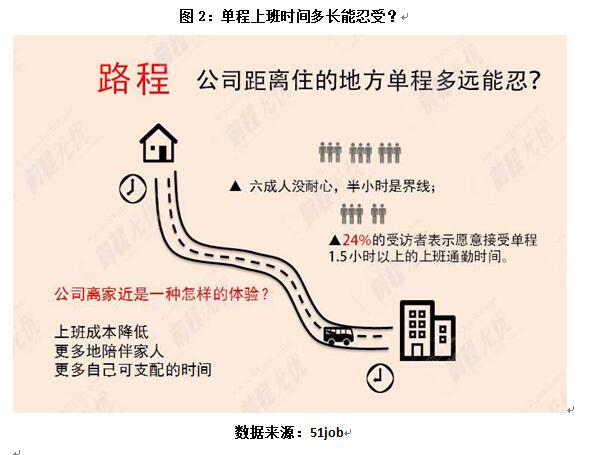 前面提到,路途太远成为个人不接受面试或是取消面试的重要原因。那究竟公司离家多远才算远呢?进一步调查显示,61%的受访者表示,半小时是忍耐的界线。(见图2)公司离家近节约的不仅仅是交通费,还有时间成本。一位网友表示:“上份工作,去公司单程时间要2个小时,当同事在家吃晚饭时,我还在路上;同事吃完饭出门散步遛娃的时候,我还在路上;同事都上床休息,陪着娃做睡前阅读了,我终于打开了家的大门,这是一种怎样的体验?”