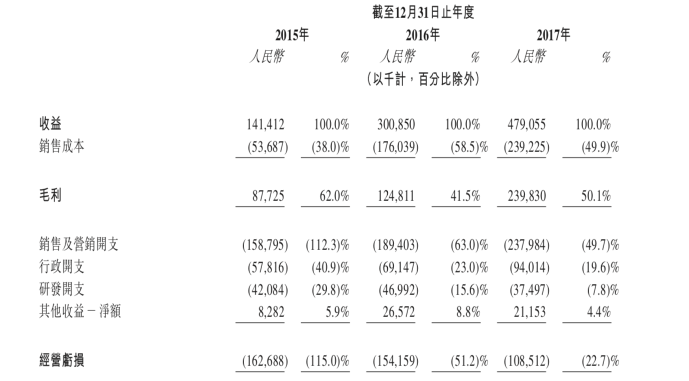 不过,齐家网的毛利也在逐年增长。其毛利由2015年的8770万元增加至2017年的2.4亿元,年复合增长率为65.4%,2017年的毛利率为50.1%。其中,毛利率最高业务为网络平台业务,毛利率高达89.4%。而其自营的室内设计业务毛利率为24.7%,相比网络平台业务低了不少。