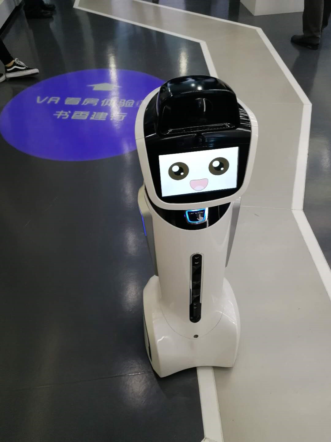 进入体验大厅的电子门后,就有另一只小型的“小龙人”机器人迎上来。暂且称她为“迷你小龙人”吧,她负责解答大堂内用户提出的各种办理业务的疑惑,并移动指引用户前往办理。
