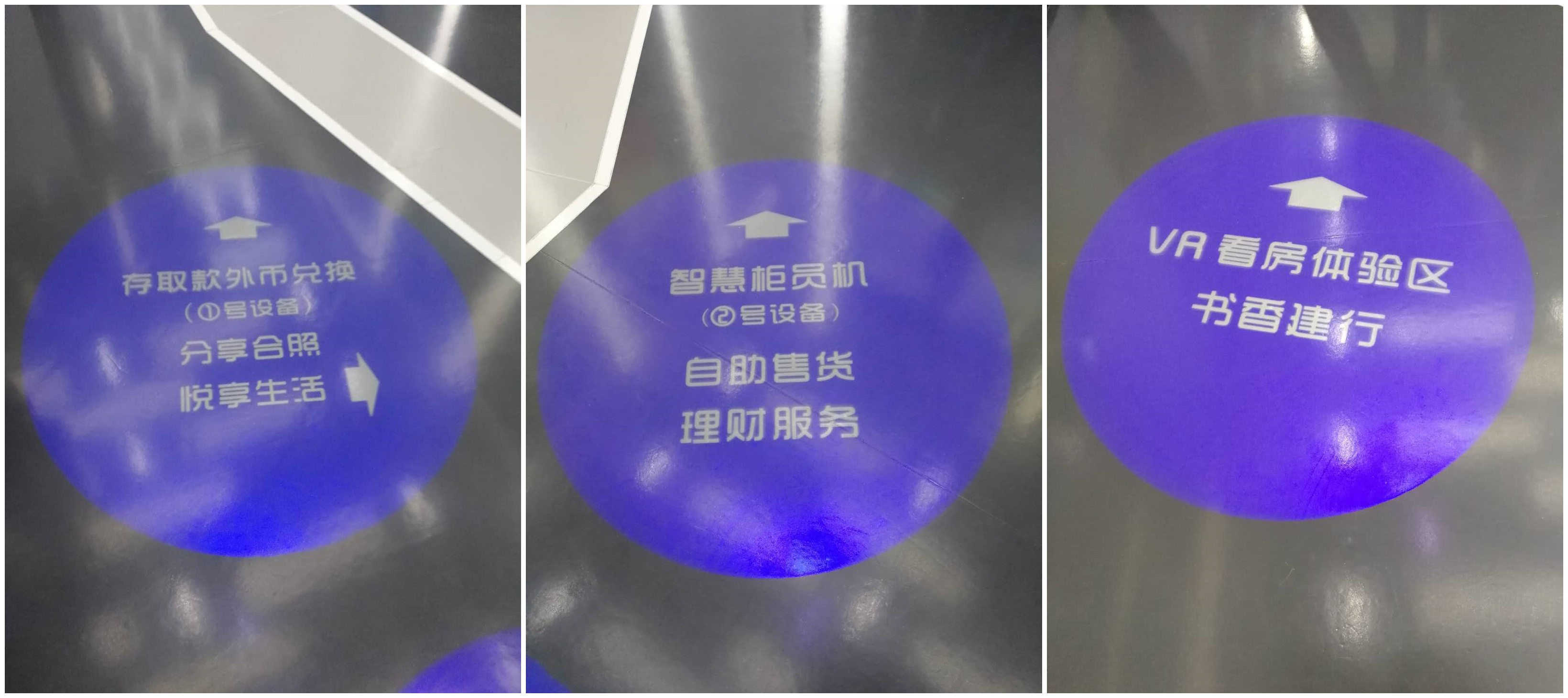 总体上,整个大厅分为3大功能区域,分别为存取款外币兑换区、智能柜员机、VR看房体验区。
