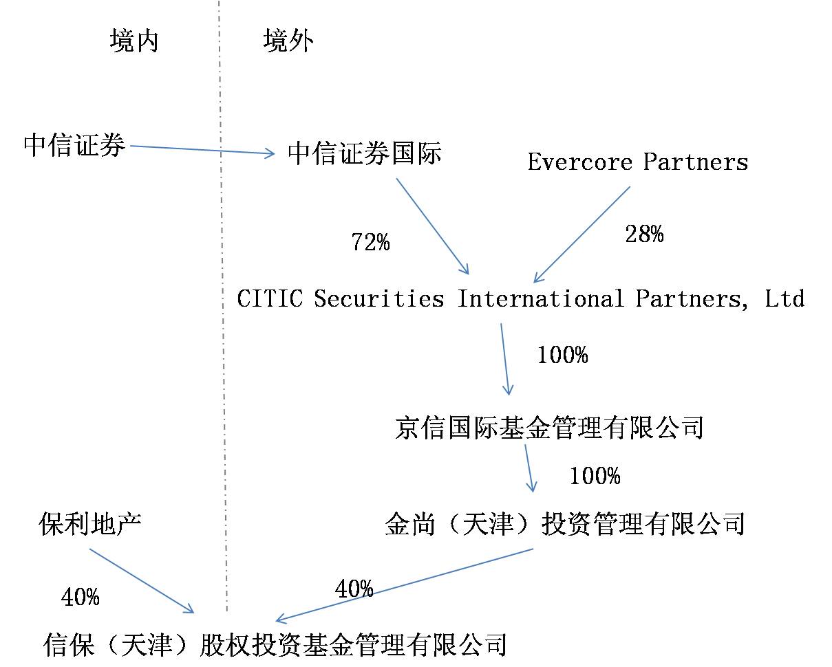 中信证券的低调态度,通过为天津信保设置的复杂的股权架构得以体现。为了投资这个地产基金管理公司,中信证券甚至还绕道境外子公司在国内买了一个壳。
