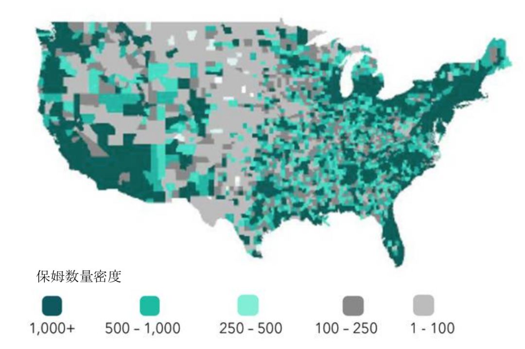 尽管如此,美国进步中心(Center for American Progress)发现,这一高度碎片化的市场供需缺口巨大。去年该中心的一份研究报告称,全美仍有22个州、超过51%的美国人生活在“儿童护理荒漠”(Childcare Desert)中,难以有效获得充足的儿童护理服务。即使在最为发达的美国东海岸,好的保姆也十分难找。CBS曾发表过一篇关于保姆难寻的文章,称“让一位妈妈告诉你她的保姆的名字,比让她说出银行卡密码还要难”。