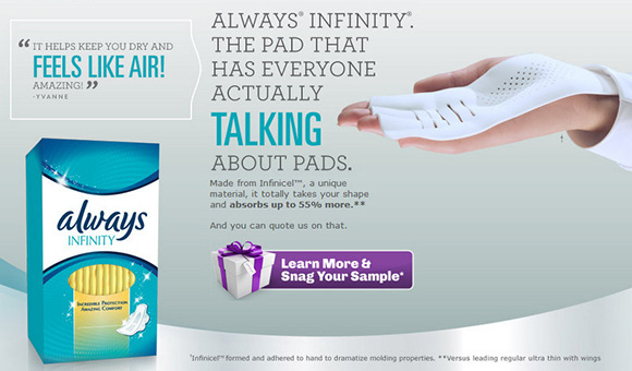 根据宝洁提供的资料,这款叫做护舒宝未来感·极护(Always Infinity)的产品由一种来自液体的材料构成,该材料采用安大略湖的纯净水源和纳米级分子聚合物通过乳化技术液化而成。和传统意义上的棉绒纤维材质不同,由于水的特性,其更加适用于一体成型的产品,在生产过程中,材质和密度也更好控制。