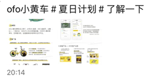 ofo市场部员工罗宾近日在微信朋友圈发布了ofo小黄车“夏日计划”的广告业务海报。他告诉全天候科技,“该业务将会在全国250多个城市推广,早期由于合作的企业不多,更新没那么快,客户一个月的合同可以保留3个月”。