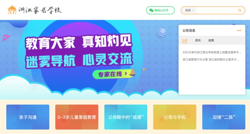 紧接着在2018年5月3日,“浙江家长学校”宣布上线,该平台是一个公益性网站,旨在发布家庭教育政策和动态,汇聚优质资源。